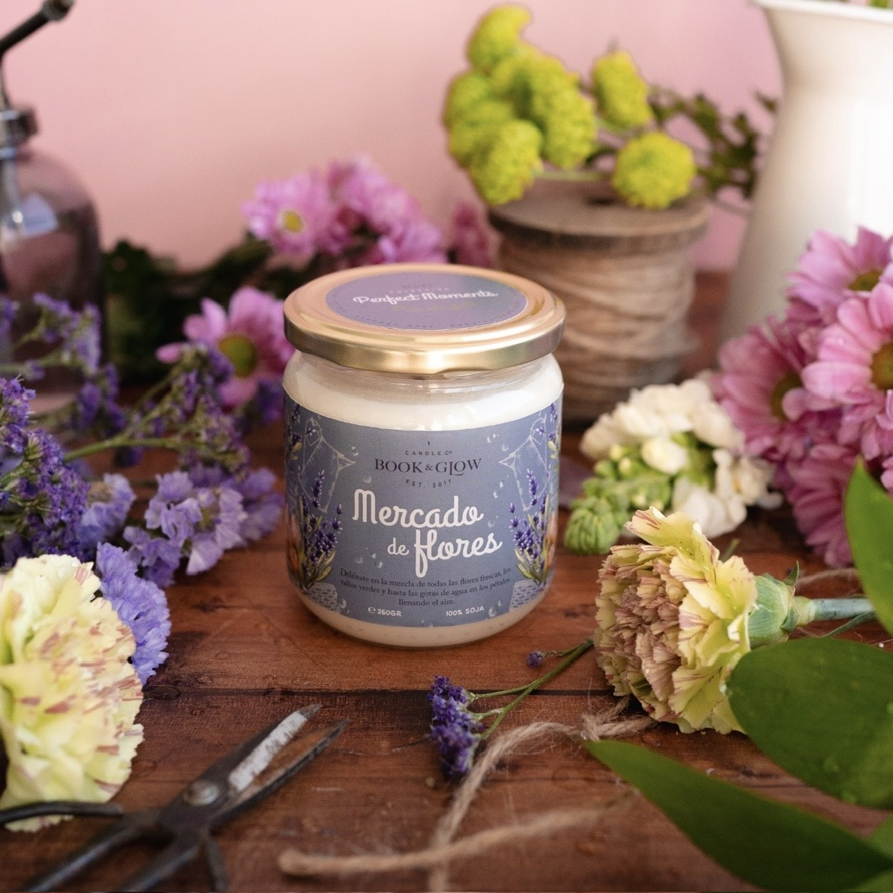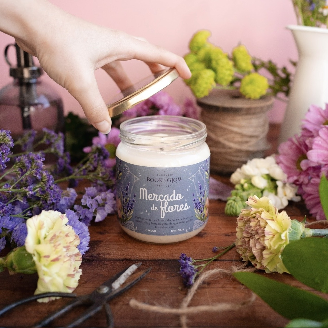 Ingredientes: cera 100% de soja sin aditivos, mecha de algodón, aceites esenciales y aceites aromáticos de calidad premium, certificados por la IFRA.